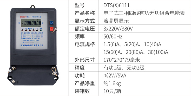 DTS(X)6111、DSS(X)6111型三相電子式有功無功組合電能表(以下簡稱電能表),是為了適應(yīng)電網(wǎng)改造設(shè)計(jì)開發(fā)的有功、無功組合式電能表。它具有較高的準(zhǔn)確度和可行性。產(chǎn)品制造標(biāo)準(zhǔn)符合GB/T17215.321-2008《1級和2級靜止式交流有功電能表》、GB/T17215.323-2008、DL/T614-1997《多功能電能表》、DL/T645-1997《多功能電能表通信規(guī)約》等電力行業(yè)標(biāo)準(zhǔn)對三相靜止式電能表全部技術(shù)要求,是對需要進(jìn)行無功電量考核的企業(yè)、變電站或電廠理想的選擇,亦適合輸配電或配網(wǎng)自動化用表。本產(chǎn)品可供計(jì)量參比頻率為50Hz電網(wǎng)中的三相交流有功和無功電能,并能進(jìn)行正、反向電能計(jì)量和紅外及RS485通訊功能。其特點(diǎn)是精度高、可靠性好、寬負(fù)荷、低功耗、誤差曲線平直、抗干擾能力強(qiáng)。