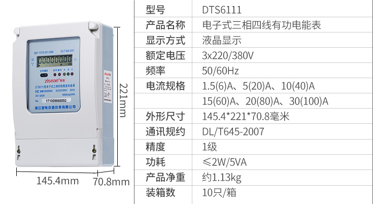DTS6111三相四線、DSS6111三相三線型三相電子式電能表是采用集成電路,16位A/D轉換、數字乘法器、應用數字采樣處理技術及SMT工藝,根據工業用戶實際用電狀況所設計、制造的儀表。該表采用獨立三單元計量模塊能測量三相正向和反向的有功電能。計量誤差具有穩定性。