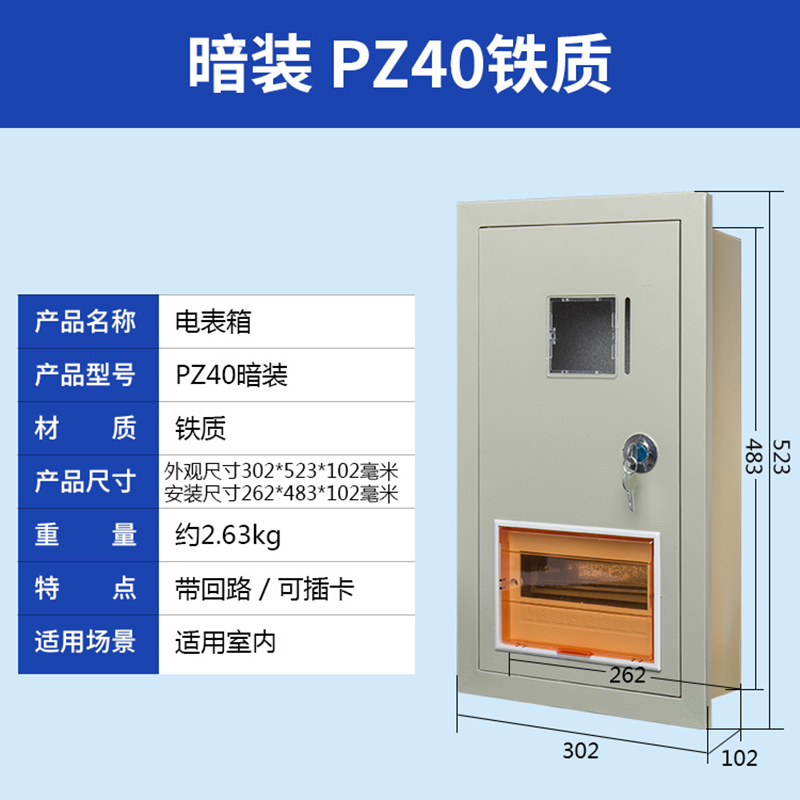 我公司生產(chǎn)的PZ40電表箱采用0.5-1mm厚冷軋鋼板和進口PC高透視窗,并帶有門鎖,安全防盜,大氣美觀??砂惭b各類電能表和C45、空氣開關(guān)、斷路器閘刀等,廣泛用于家庭、公寓、學(xué)校、工廠等場所。